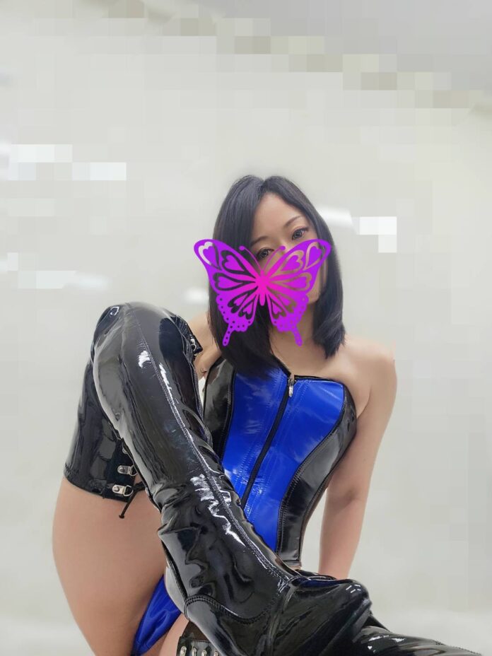 今日はブルーのランジェリーで女王様アリサのボンテージと同じ色